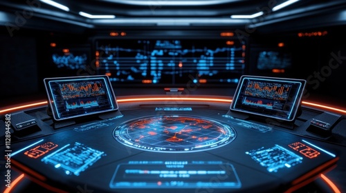 © amorn_m, Obraz premium Futuristic Control Room with Interactive Displays