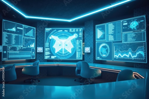 Fototapeta premium Futuristic Control Room with Interactive Holograms and Data Visualizations for High-Tech Environments