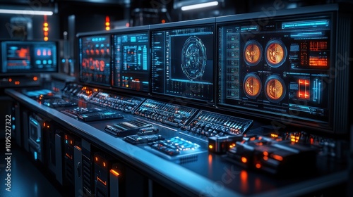 Obraz premium Futuristic Control Room with Monitors