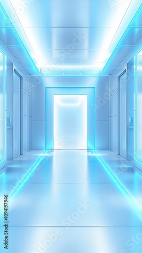 Obraz premium Futuristic Corridor with Blue Lighting