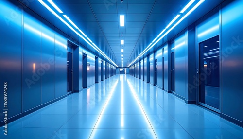 Fototapeta premium Futuristic corridor with blue neon lighting