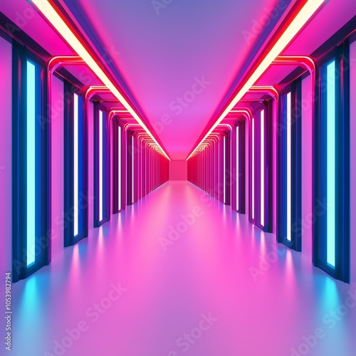 © Zara Elara HappyLife, Obraz premium Futuristic corridor with neon lights