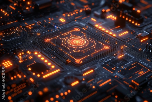 © sennauli, Obraz premium Futuristic CPU, glowing circuits, technology background, digital data