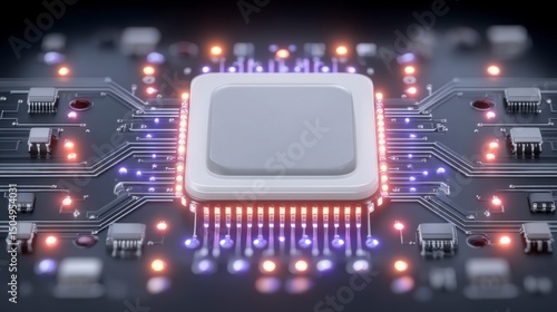 © Narongsag, Fototapeta premium Futuristic CPU Microchip Circuit Board Technology Background Neon Lights