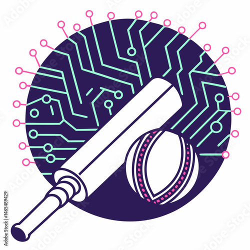 Fototapeta premium Futuristic cricket icon with cyberpunk style glowing circuit design