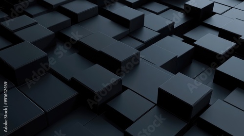 © Popelniushka, Fototapeta premium Futuristic Cubic Abstract: Dark Geometric Tech Background in Minimal Design