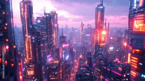 Fototapeta premium Futuristic Cyber Cityscape with 8K Realistic Lighting