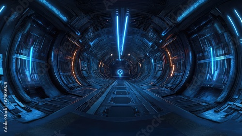 © Tunsale, Fototapeta premium Futuristic Cyber Hangar Tunnel. AI generated illustration