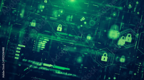 © Kaikoro, Obraz premium Futuristic Cyber Security HUD Interface with Digital Lock System