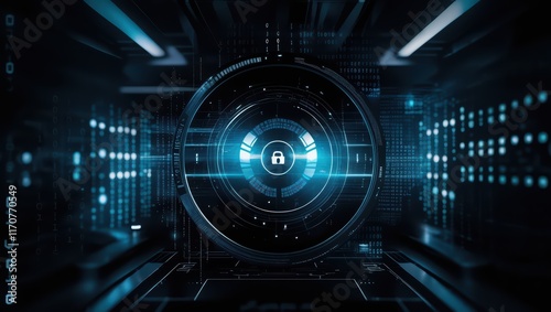 Obraz premium Futuristic Cyber Security Interface with Lock Icon