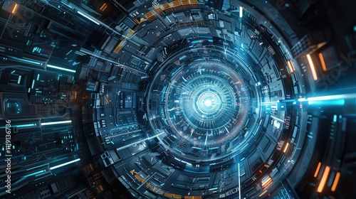 Fototapeta premium Futuristic Cyber Tunnel in Digital Space