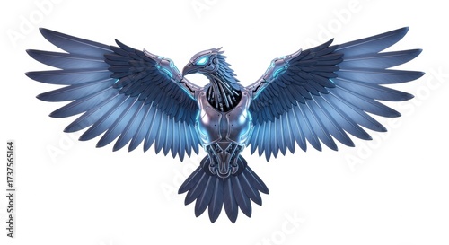 Obraz premium Futuristic Cybernetic Bird with Glowing Blue Wings