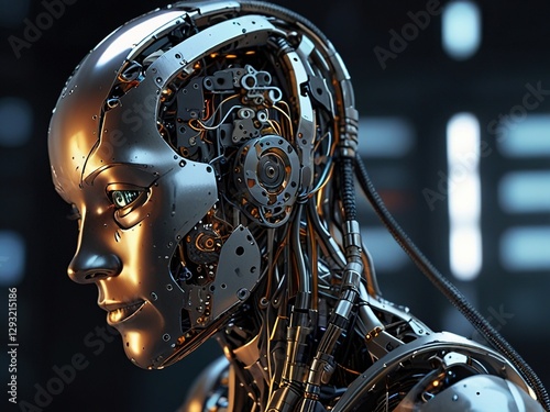 Fototapeta premium "Futuristic Cybernetic Robot – High-Tech AI Android with Metallic Design"