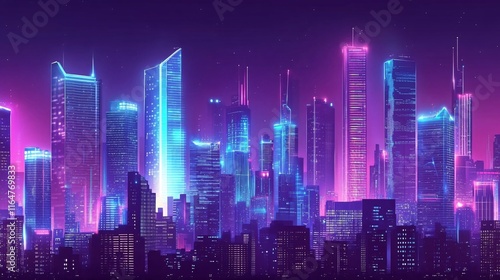 Naklejka premium Futuristic Cyberpunk Cityscape with Neon Lights at Night