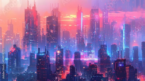 Fototapeta premium Futuristic cyberpunk cityscape with neon-lit streets