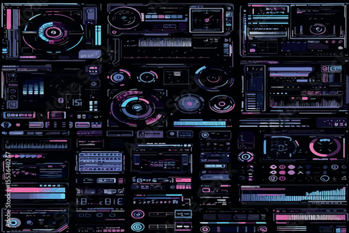 © mesbahul, Fototapeta premium Futuristic Cyberpunk HUD UI Vector Set Glitch Effects & Japanese Translations .