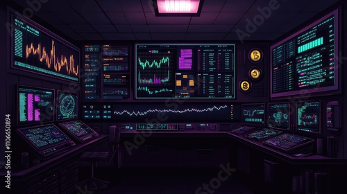 © pinporn manosri, Obraz premium Futuristic Cyberpunk Trading Room with Data Visualizations
