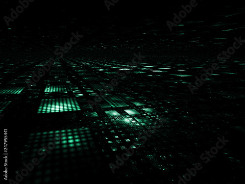 Obraz premium Futuristic cyberspace, green abstract techno background.