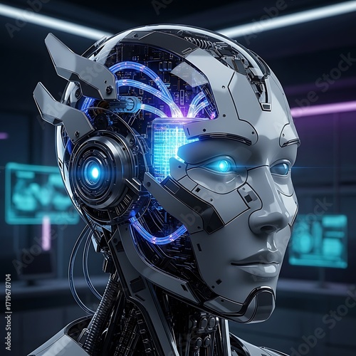 © ci, Fototapeta premium Futuristic Cyborg - A Glimpse into Advanced Artificial Intelligence.