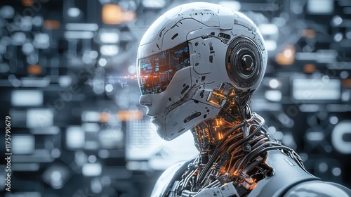 Fototapeta premium Futuristic Cyborg Portrait: Artificial Intelligence and Technological Advancement