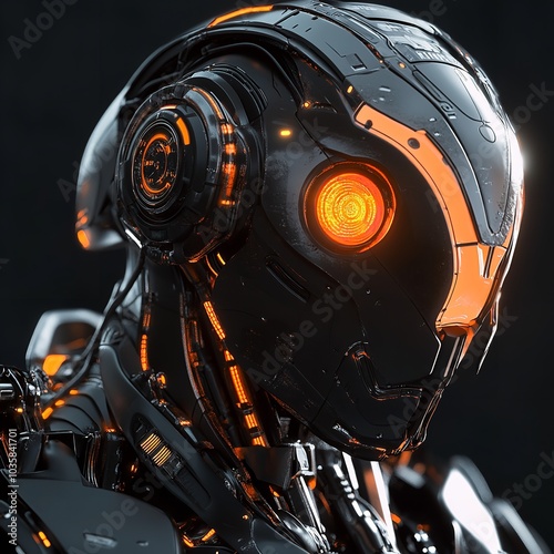 Fototapeta premium Futuristic Cyborg Portrait with Glowing Eyes