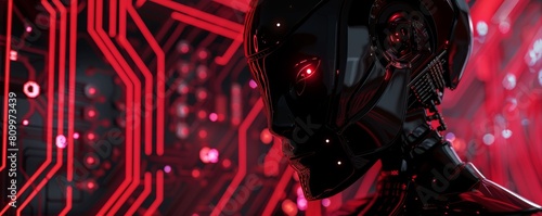 Obraz premium Futuristic cyborg profile against red circuit background