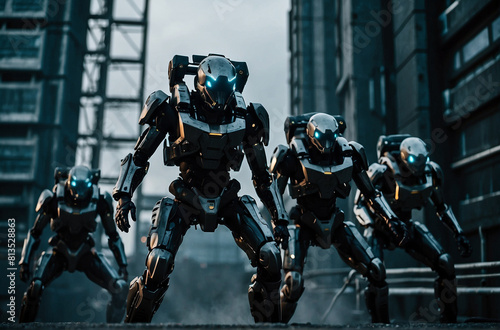 Naklejka premium Futuristic Cyborg Warriors, Sci-Fi Military Armored Army