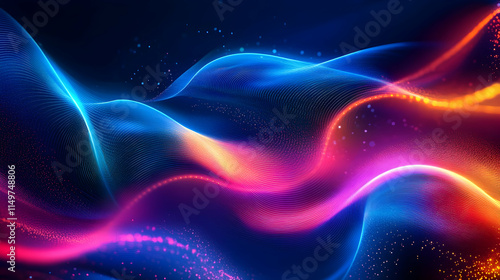 Fototapeta premium Futuristic 3D abstract background with swirling neon lines, geometric shapes, and soft glowing lights, creating a dynamic, high-tech atmosphere