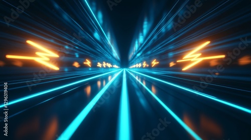 © Futuristictech, Obraz premium Futuristic 3D Abstract Scene with Neon Arrows and Light Trails