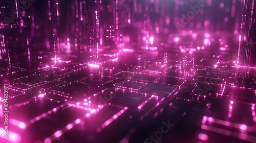 © Kenny Parker, Obraz premium Futuristic 3d cyber grid featuring advanced glowing digital network elements