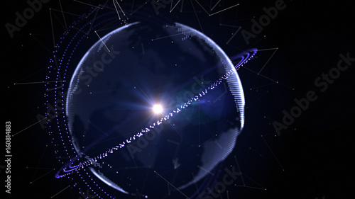 © komjomo, Obraz premium Futuristic 3D globe with ring and satellite
