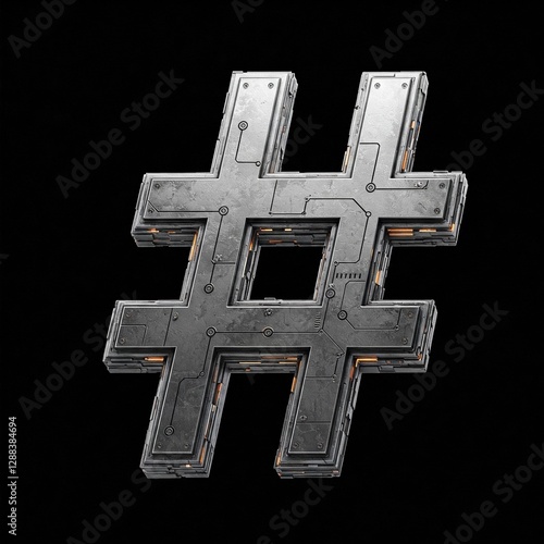 Obraz premium Futuristic 3D Hashtag: A Cyberpunk Symbol of Connectivity.