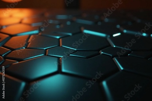 Fototapeta premium Futuristic 3D Hexagon Pattern with Blue and Orange Illumination for High-Tech...