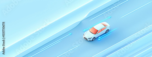 Naklejka premium Futuristic 3D Illustration of Cars on a Highway with Blue Arrows Indicating...