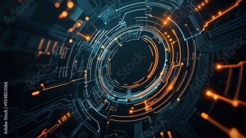 © Exnoi, Obraz premium Futuristic 3D loop with glowing circuits and digital nodes, symbolizing advanced technology and connectivity, designed for seamless background integration