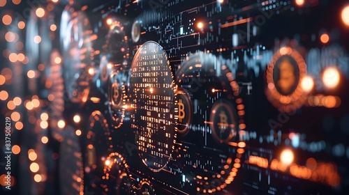 Naklejka premium Futuristic 3D of Cryptocurrencies and Blockchain Technology Powering Global...