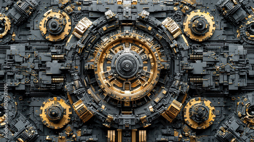Fototapeta premium Futuristic 3D printer constructs tools on the Martian surface with advanced technology