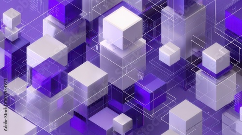 Obraz premium Futuristic 3D Purple Cubes Abstract Geometric Background