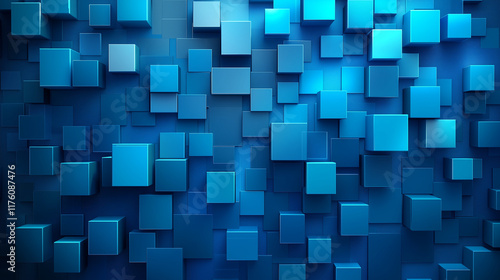 © Annie, Fototapeta premium Futuristic 3D Render of a Digital Cube in a Neon Cyber Network, blue geometric background, minimalist design, wall paper