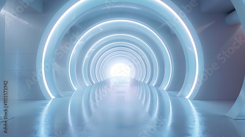 Obraz premium Futuristic 3D Room: Abstract High-Tech Tunnel of Light, Ideal for Sci-Fi,...