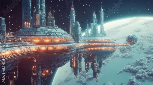 Obraz premium Futuristic 3D Space Station Illustration