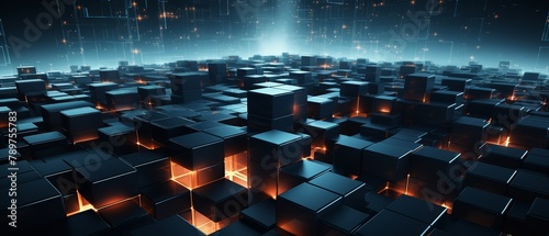 Obraz premium Futuristic 3D squares and dark geometric shapes forming a minimalist energy grid,