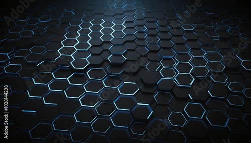 Fototapeta premium Futuristic dark grid with glowing hexagonal cells