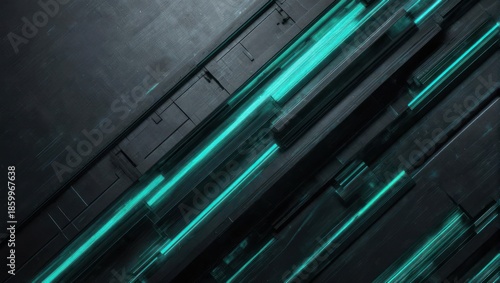 Obraz premium Futuristic dark surface with glowing turquoise lines, modern technology background.