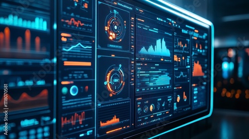 Obraz premium Futuristic Data Analytics Dashboard Display Screen Showing Charts and Graphs