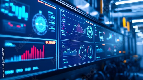 Obraz premium Futuristic Data Analytics Interface with Graphs and Metrics Display
