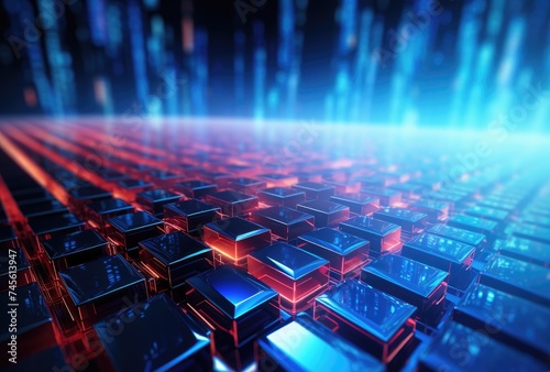 Obraz premium Futuristic Data Blocks and Streaming Light Rays