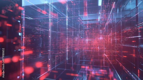 Fototapeta premium Futuristic Data Center Network Visualization Featuring Advanced Server Technology and Digital Infrastructure for Enhanced Data Processing