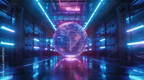 Fototapeta premium Futuristic Data Center with Digital Globe
