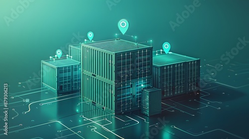 Fototapeta premium Futuristic data center with glowing digital maps symbolizing connectivity and...
